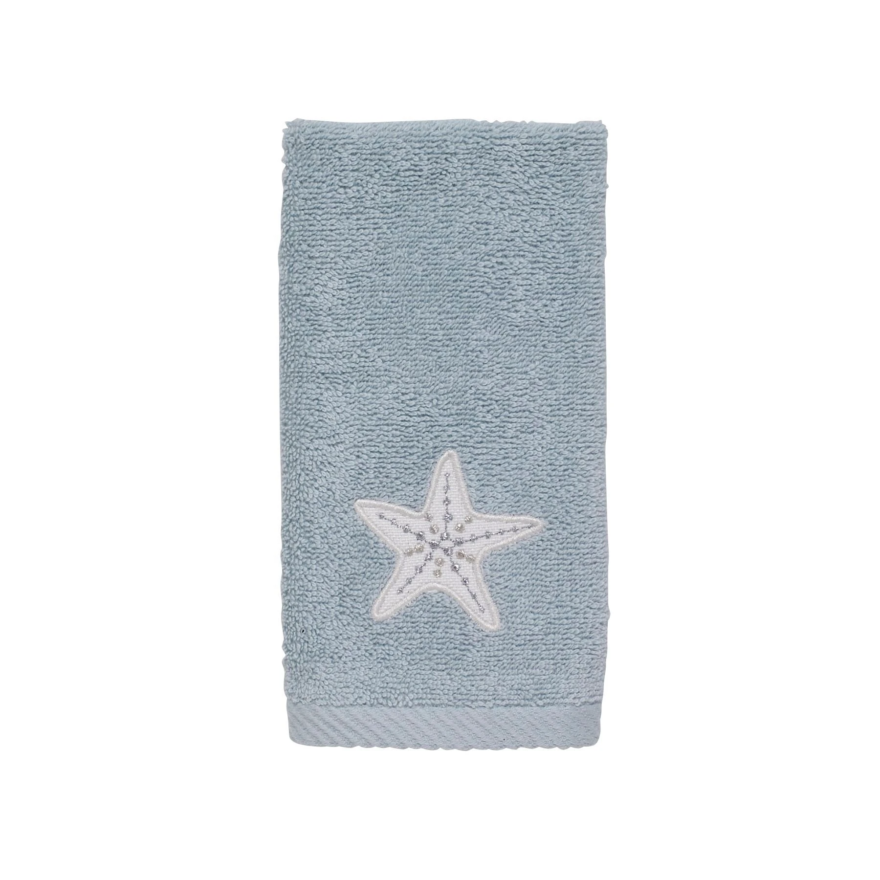 With beautifully embroidered starfish on white applique fabric on a 100% cotton mineral terry towel, the Avanti Sequin Shells Fingertip Towel adds an understated touch of the sea to any bath dรฉcor.