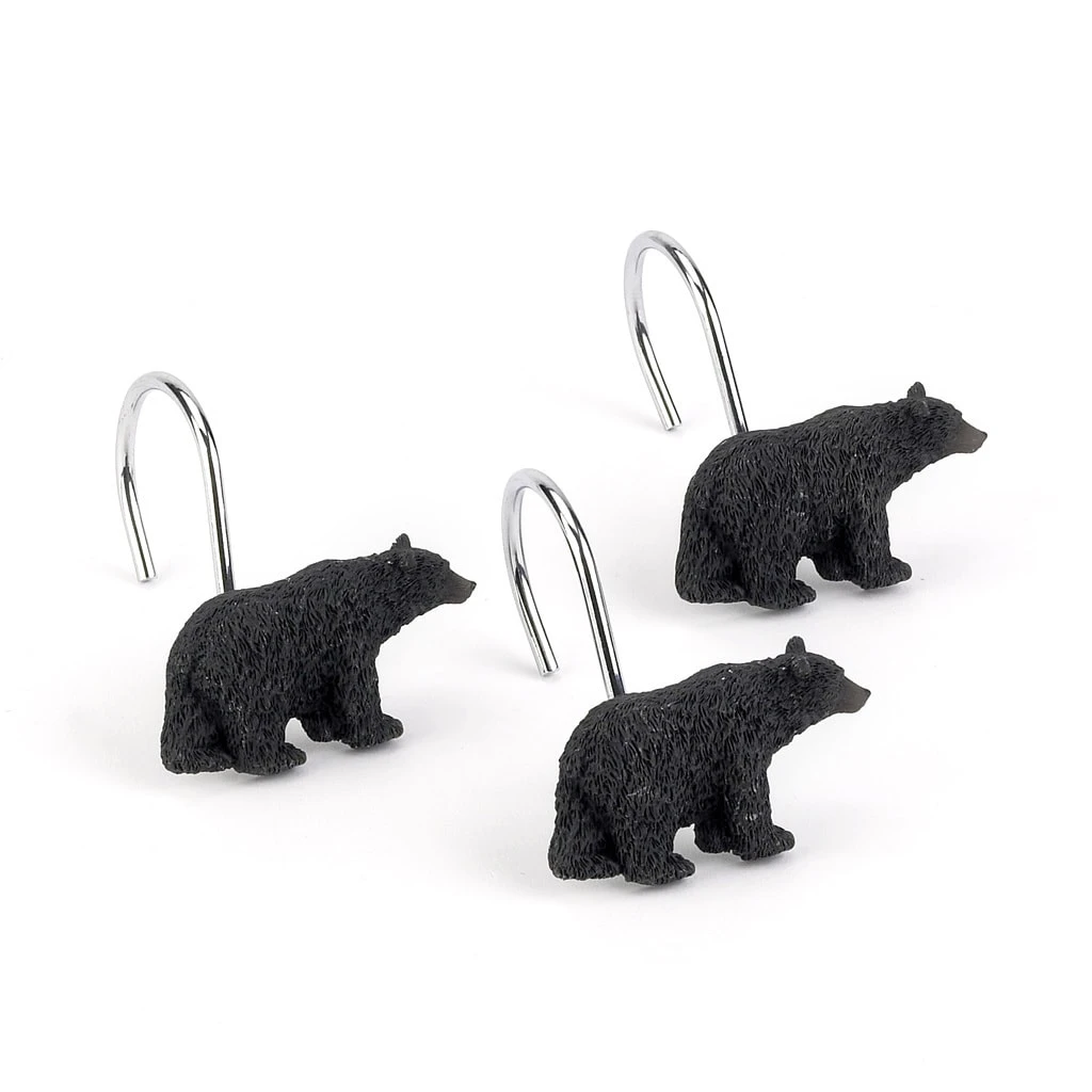 Enhance your shower curtain and give it a unique look with this pack of 2-inch, black bear-shaped shower curtain hooks. The bear figures are made of resin with a silvertone hook for durability in the bathroom environment, and they easily match most curtain styles and colors for easy coordination.