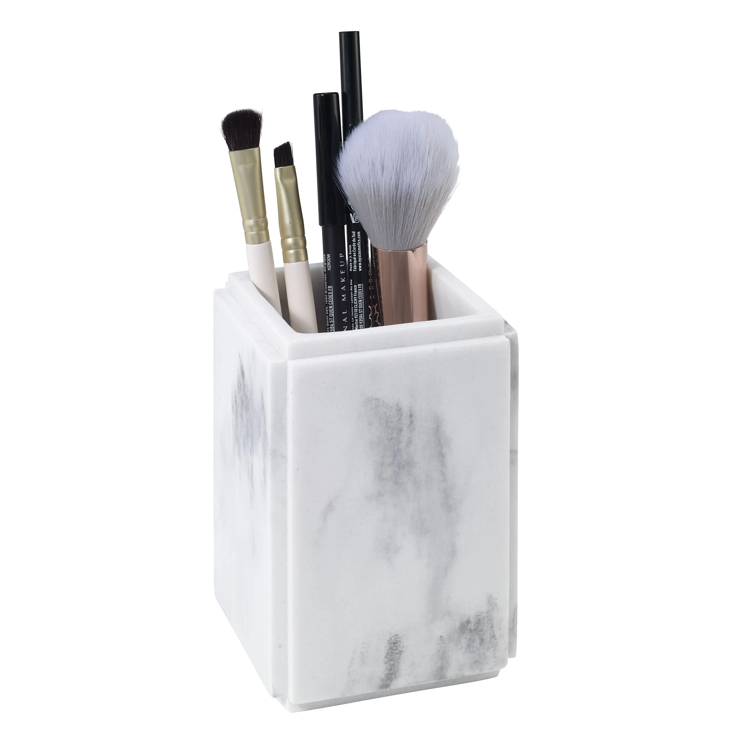 The Avanti Catania Tumbler features a grey and white marble look in a contemporary, geometric shape. With its beveled edges that give it a crisp, clean look, this piece adds a level of style and sophistication to any bathroom. Made of durable resin for long-lasting use.
