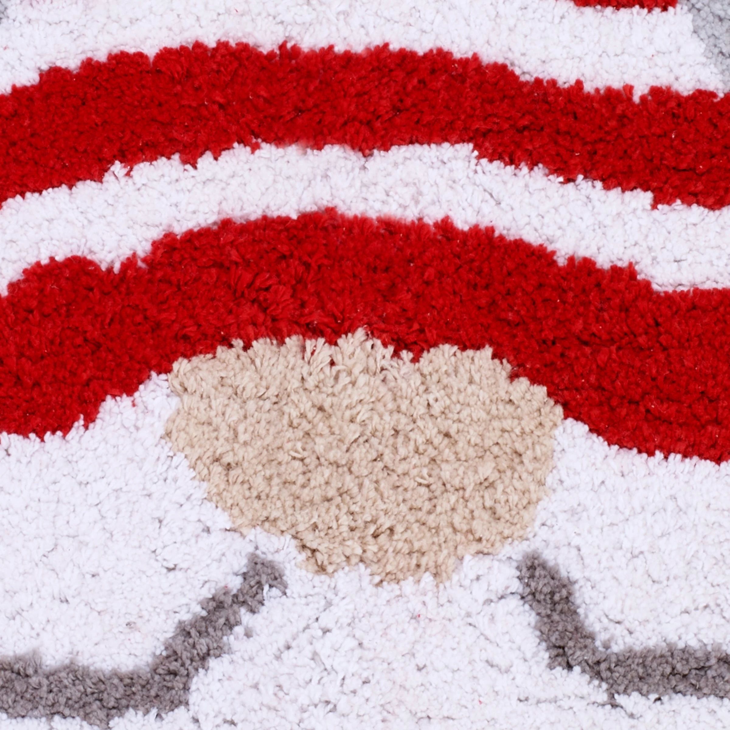 The Avanti Christmas Gnome Bath Rug features a gnome with long white beard and red and white striped hat. Large white snowflakes decorate the light grey ground. Tufted in 100% cotton, 20″ x 32″, latex non-skid back. Imported.