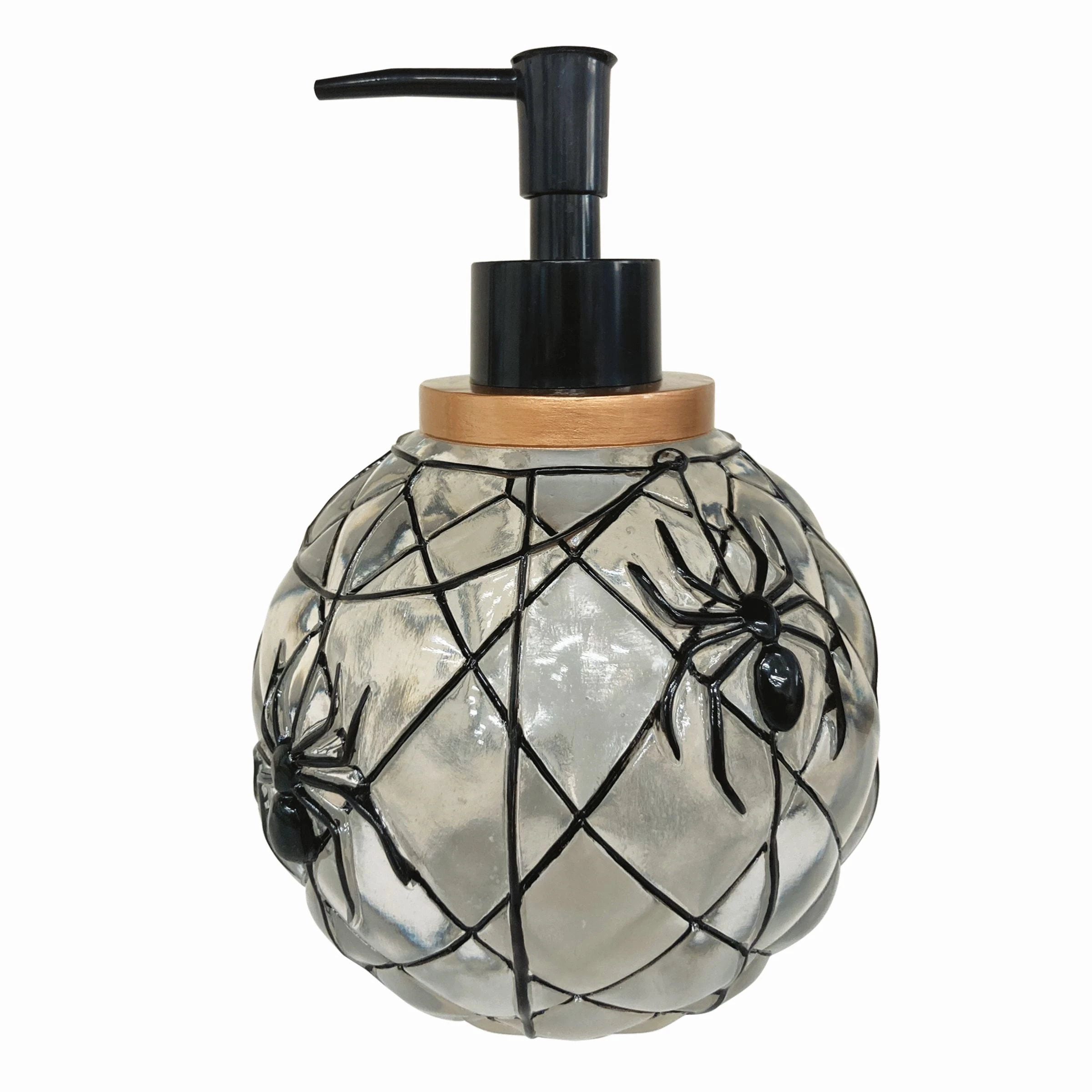 The Avanti Clear Pumpkin with Spiders Decorative Lotion/ Soap/ Sanitizer Dispenser is a translucent clear pumpkin with black spiders and a coordinating black pump. Made of durable, hand-painted resin, 4.3″L x 4.3″W x 6.7″H. Brings a bit of Halloween spirit to any bathroom or kitchen.