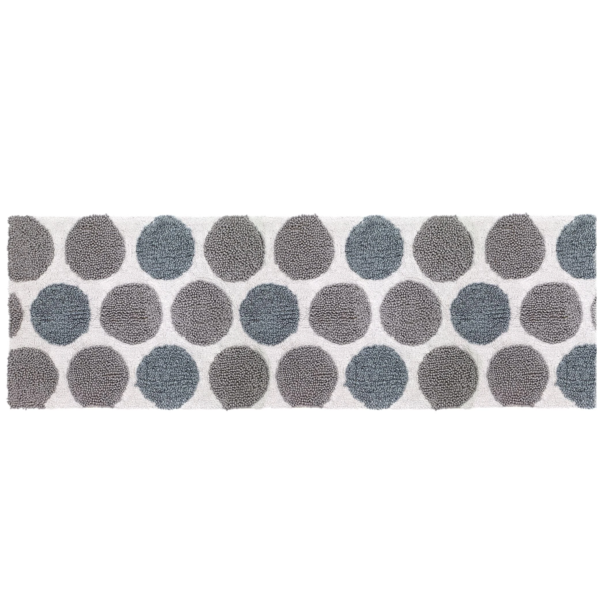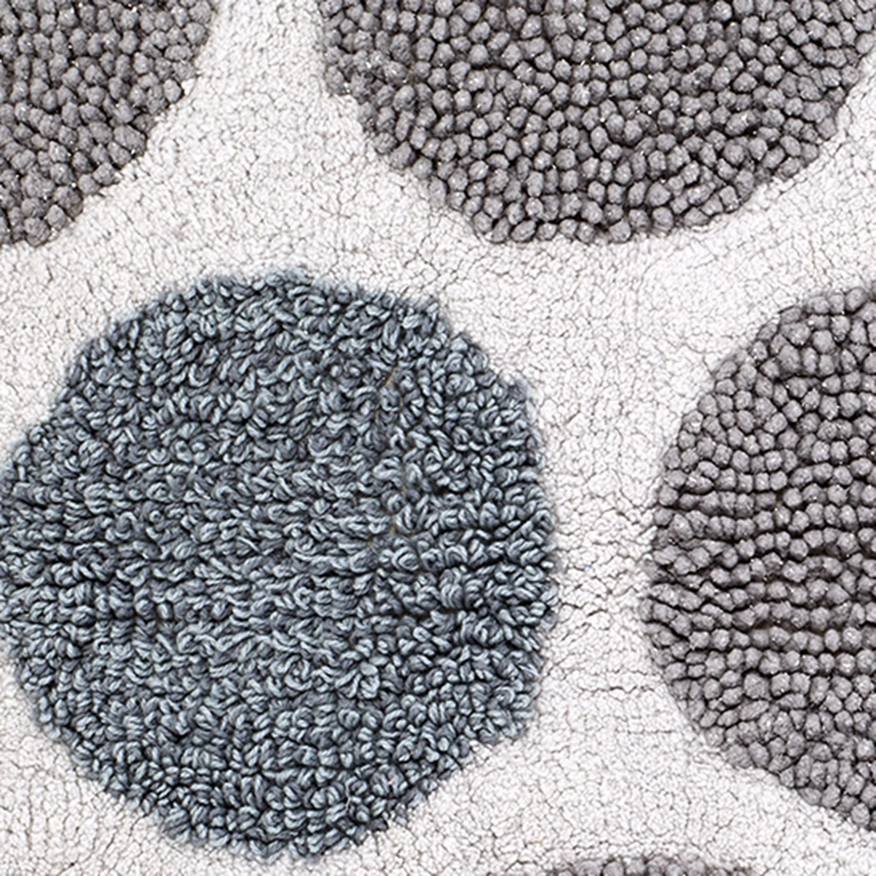 The Avanti Dotted Circles Rug is tufted in 100% cotton in blue, grey and white. It’s the perfect finishing touch for the coordinating shower curtain, bath accessories and towels. This oversized rug is skid resistant and machine washable.