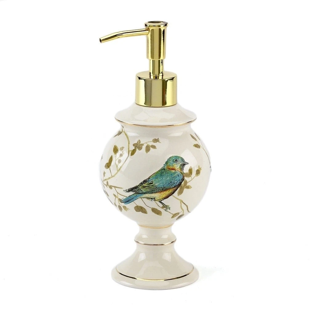 Liven up your guest bathroom’s decor with this Gilded Birds lotion pump resting atop your sink. Aesthetically pleasing and making moisturizing hands a snap, the goldtone pump functions smoothly to dispense lotion, while the ceramic construction provides a weighted vessel to hold the lotion.