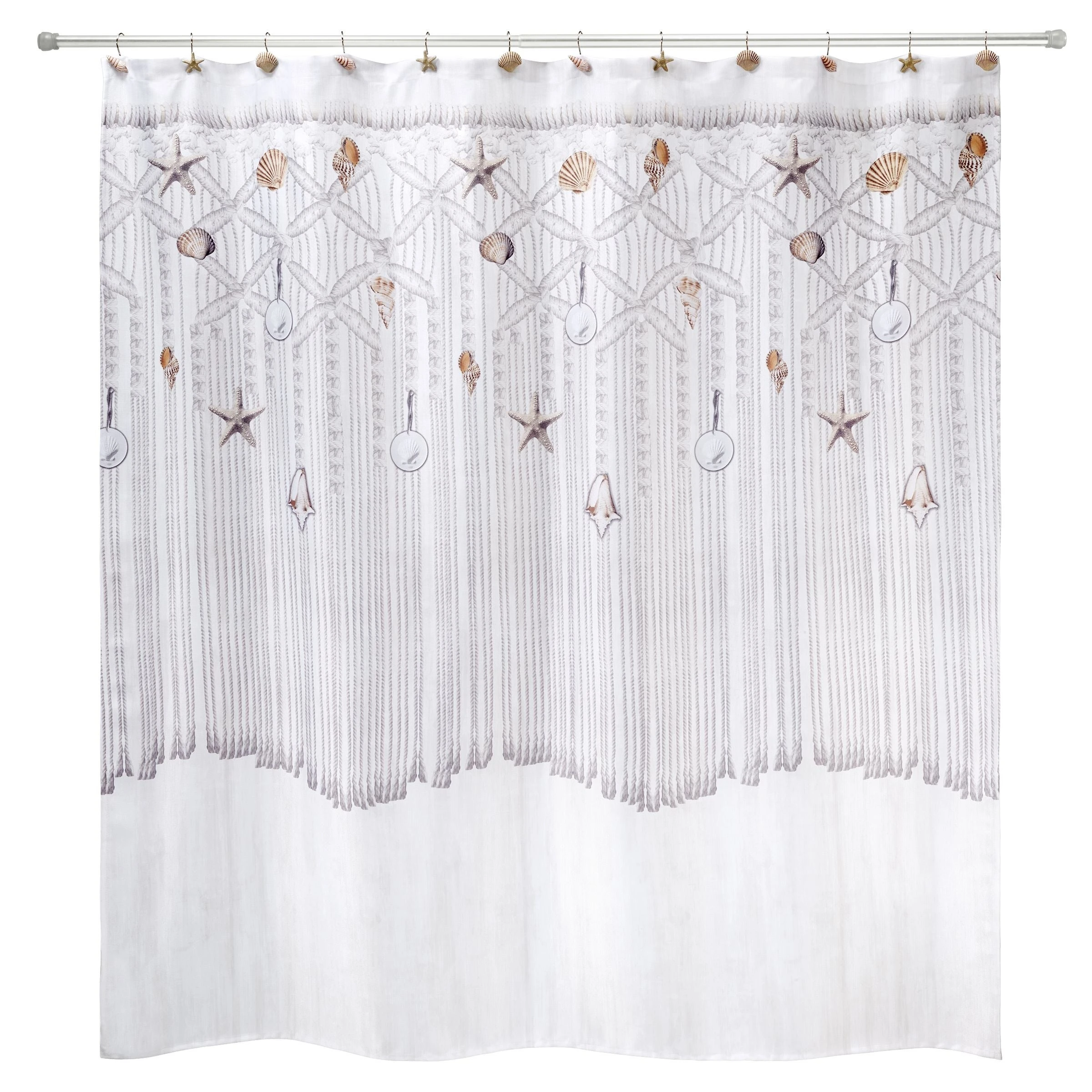 The Avanti Macrame Shells Shower Curtain is digitally printed to achieve a photo-real quality, with life-like macrame, shells and starfish in beiges browns and whites. Printed on a heavy-weight, 100% polyester textured cloth with subtle background colors. 72″ x 72″, machine wash, hang to dry.