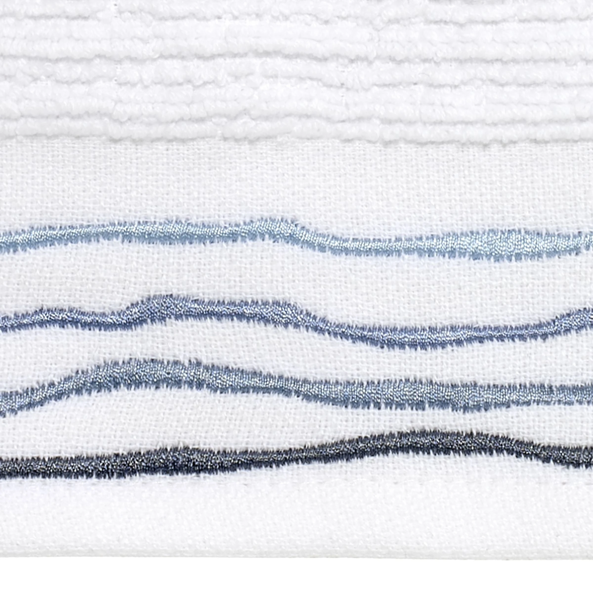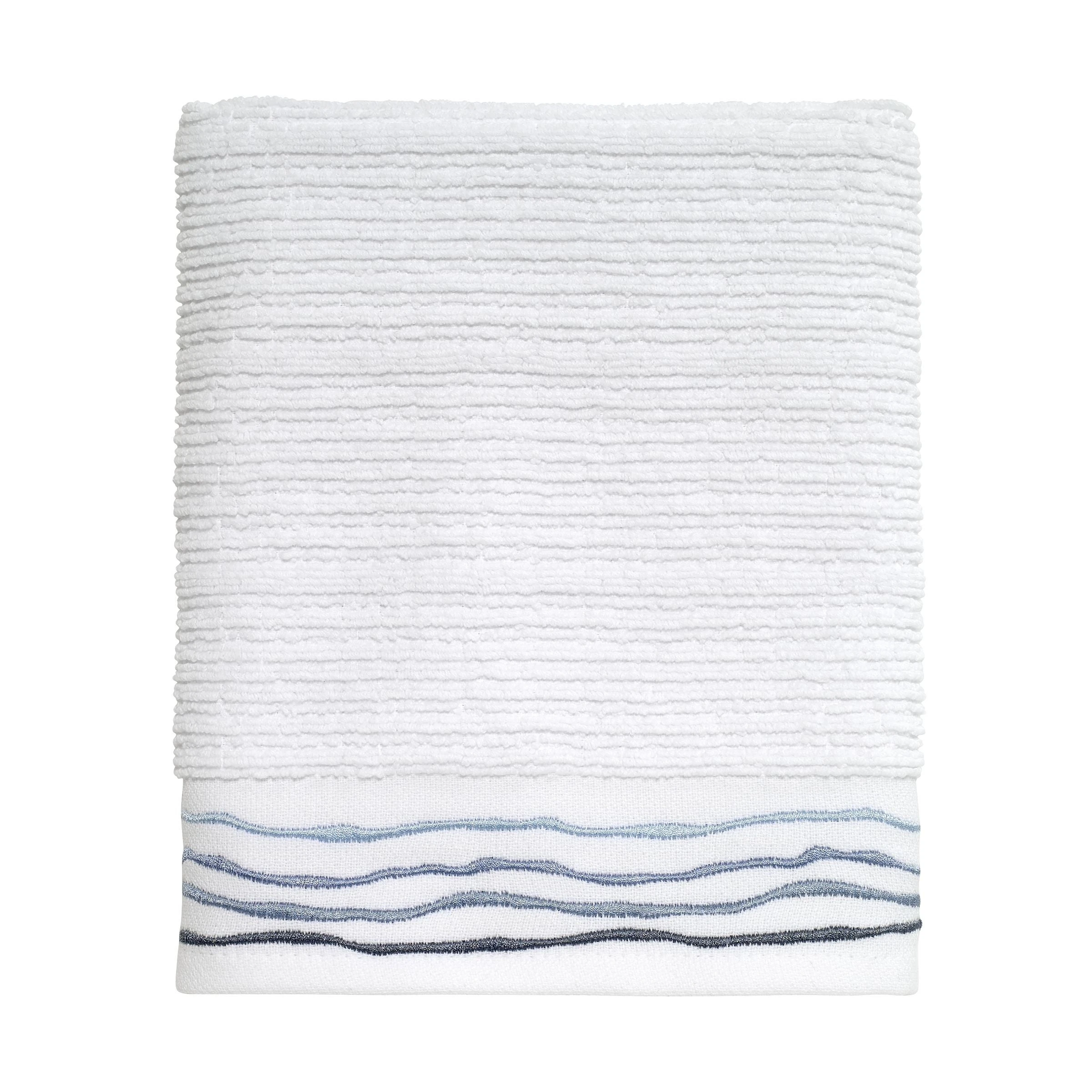 The Avanti Ripple Blue Hand Towel features a wave embroidery on the flat-woven ย ย end-hem in shades of blue. 16 x 28 in. textured terry towel is made of 100% ย ย ringspun cotton for soft feel, superior absorbency. Works with almost any ย ย decor for a clean, updated look. Imported. ย ย ย ย