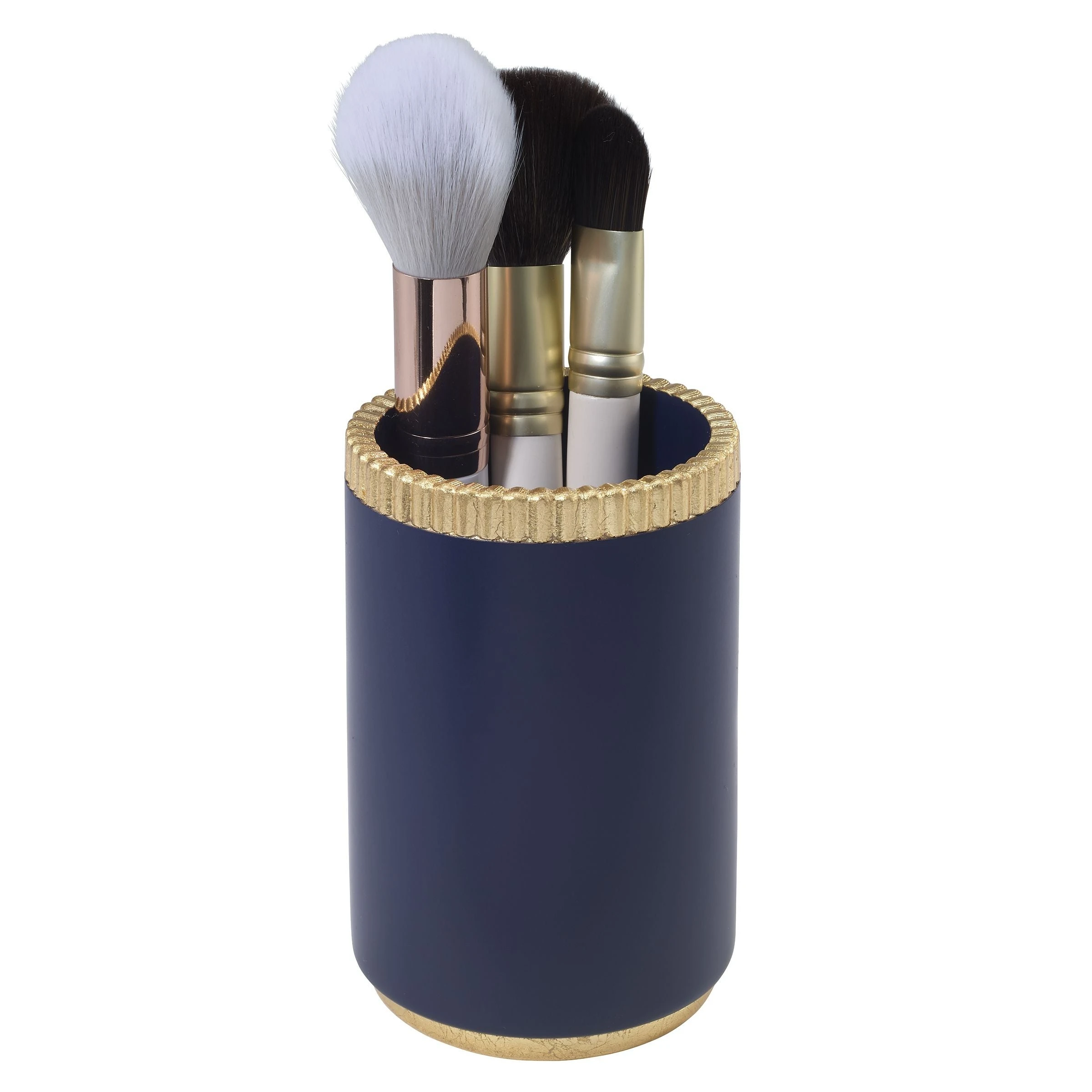 The Avanti Riviera Tumbler is a stunning combination of a smooth navy body with a ribbed gold foil top and coordinating gold bottom. it’s the perfect addition to any bathroom, office or anywhere you can use some extra storage. Made of durable resin for long-lasting use.