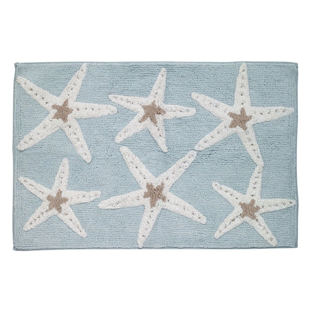 Complete the nautical charm of your bathroom with this bath rug by Avanti Linens. The soft aqua color makes the starfish pattern a focal point on your floor, while the nonskid latex backing keeps the rug in place. Made with soft cotton, this bath rug offers a gentle feel on your feet.
